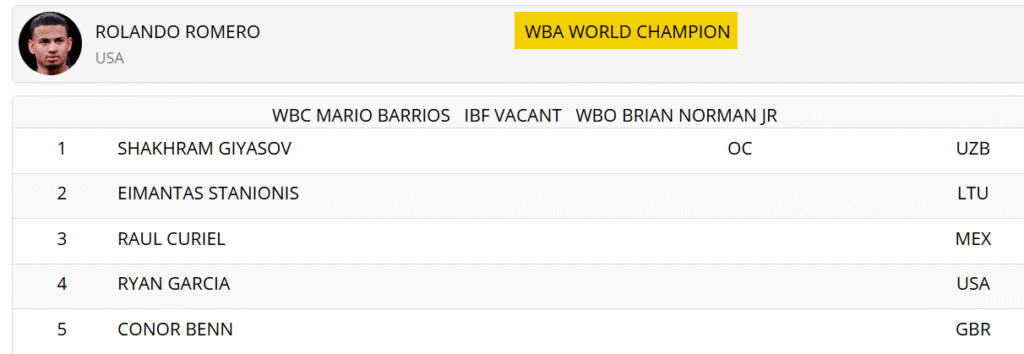 The promotion appears to be the latest blatant show of favoritism by the WBA who seems to have had a vested interest in Rolando Romero since he was competing as a lightweight (135 lbs). First becoming an interim champion at 135 pounds in 2020, Romero missed out on the opportunity to become a “regular champion” after a defeat to then-incumbent WBA “regular” lightweight champion Gervonta Davis in 2022.